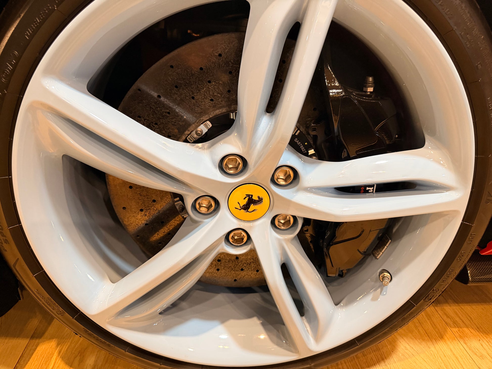 20吋鍛造輪圈施以亮面AZZURRO LA PLATA色噴漆設計